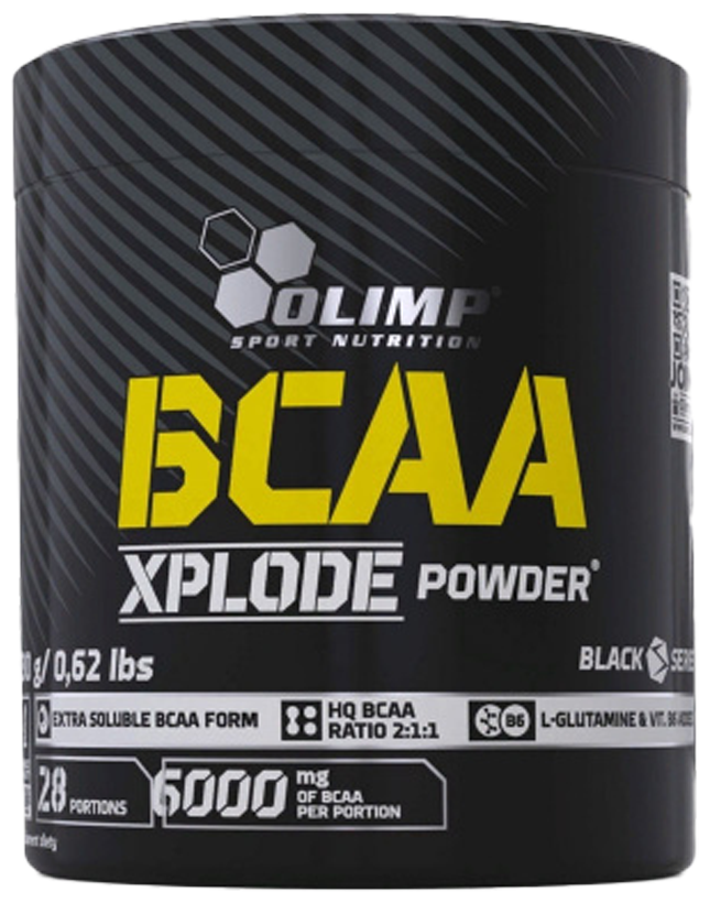 Olimp BCAA Xplode это 6000 мг BCAA из расчета на один прием в пропорции 2:1:1, обогащенные глютамином и витамином B6.