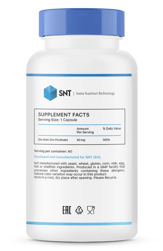 SNT Zinc Picolinate 50 мг, Пиколинат цинка 50 мг, 60 капсул