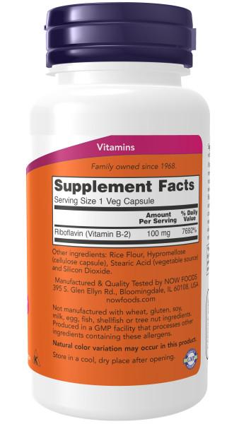 NOW Витамин В-2 100 мг, 100 вег.капс