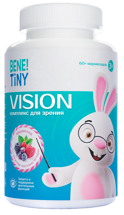 Bene! Tiny Vision - это специально разработанная формула для поддержания здоровья глаз и улучшения зрения у детей. Наш продукт содержит натуральные компоненты, которые помогают укреплять зрение, защищать глаза от усталости и поддерживать их здоровье в период активного роста и обучения.